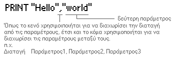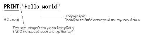 PRINT είναι χωρίς διπλά εισαγωγικά γιατί αυτή τη στιγμή ζητάμε απο την BASIC να τυπώσει τα